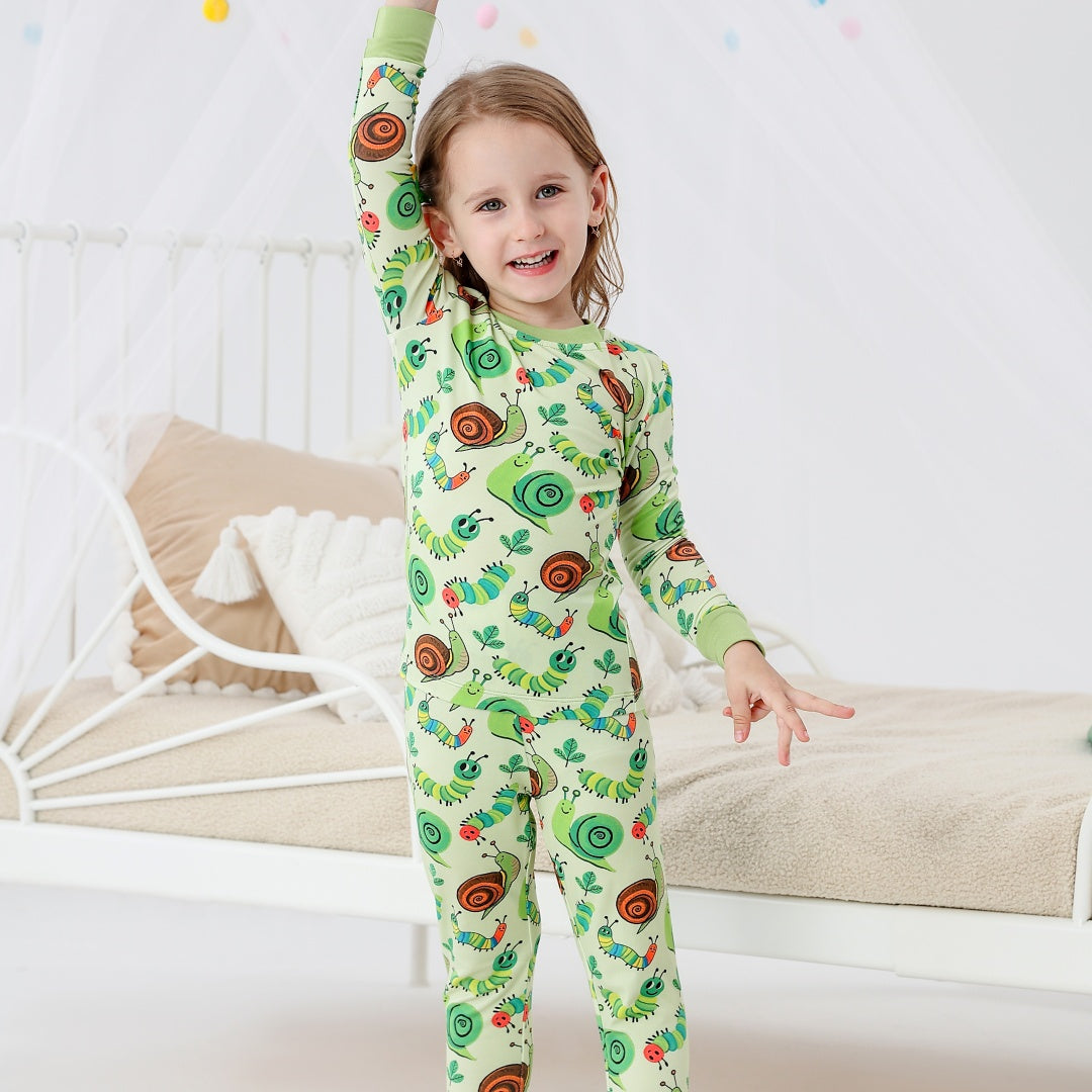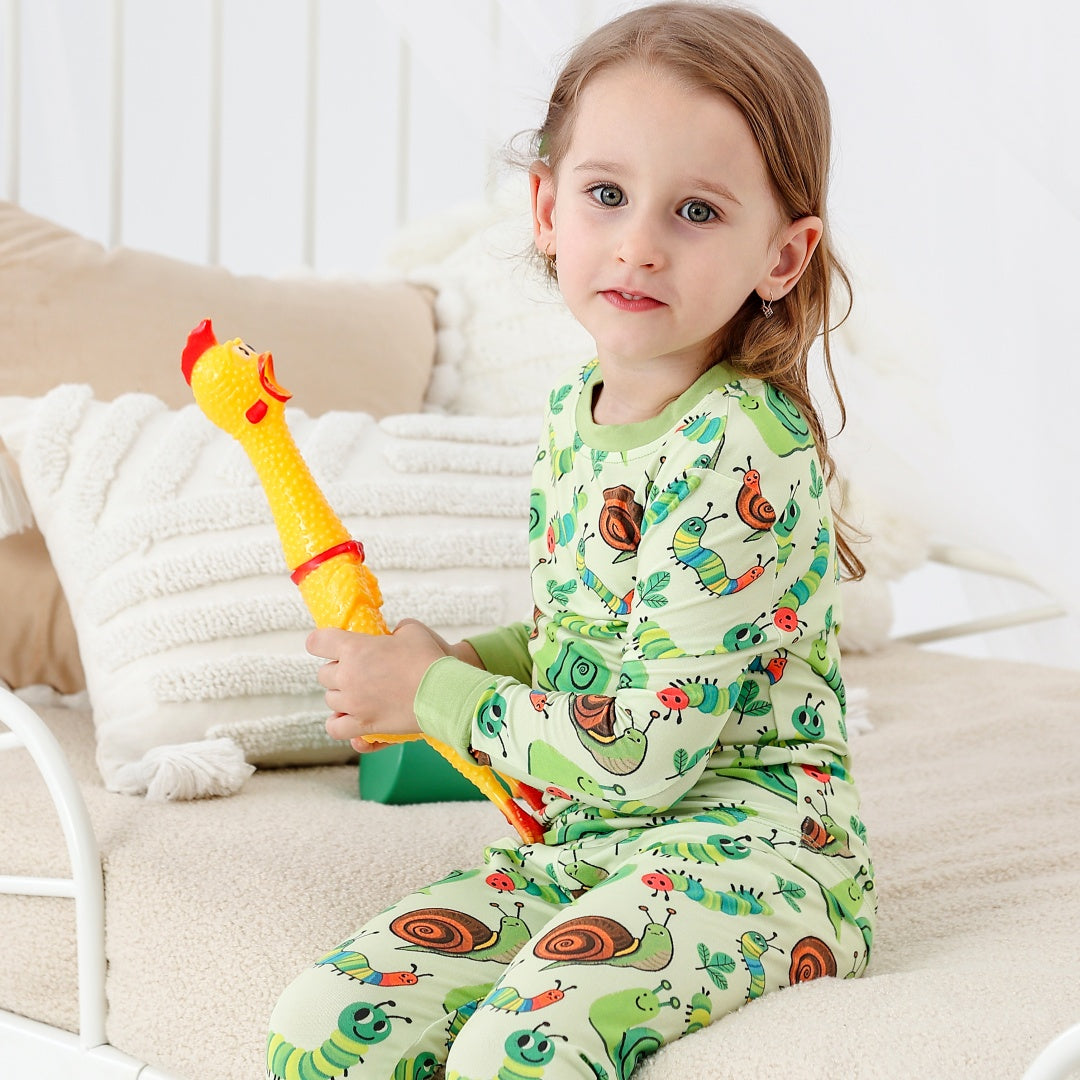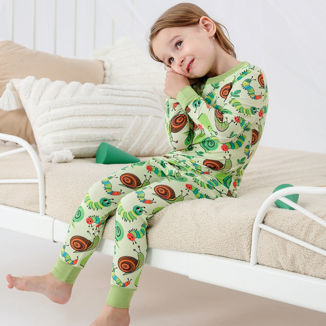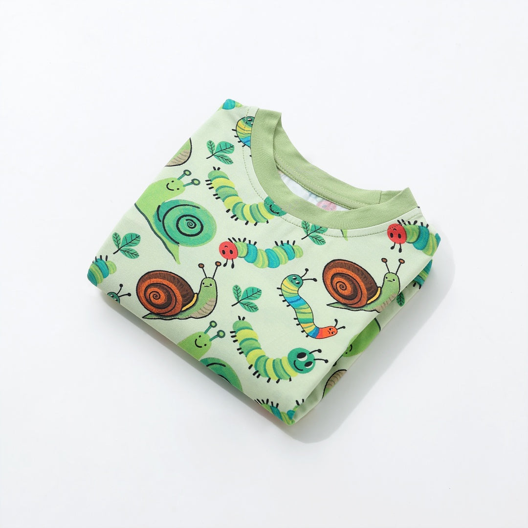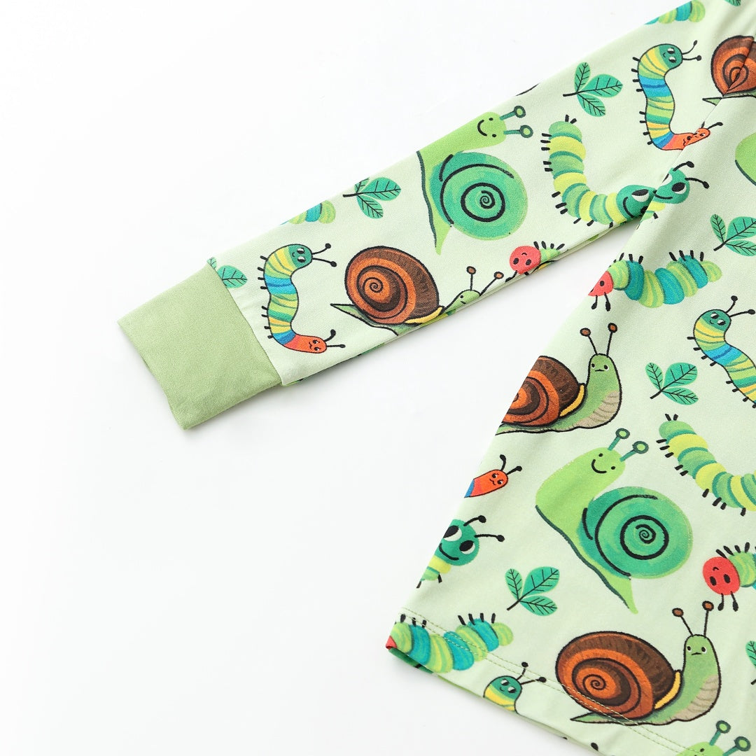 Caterpillar and Snails Long Sleeve Two Piece Pajama Set