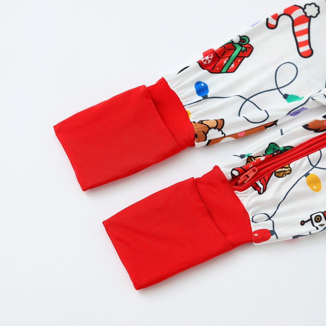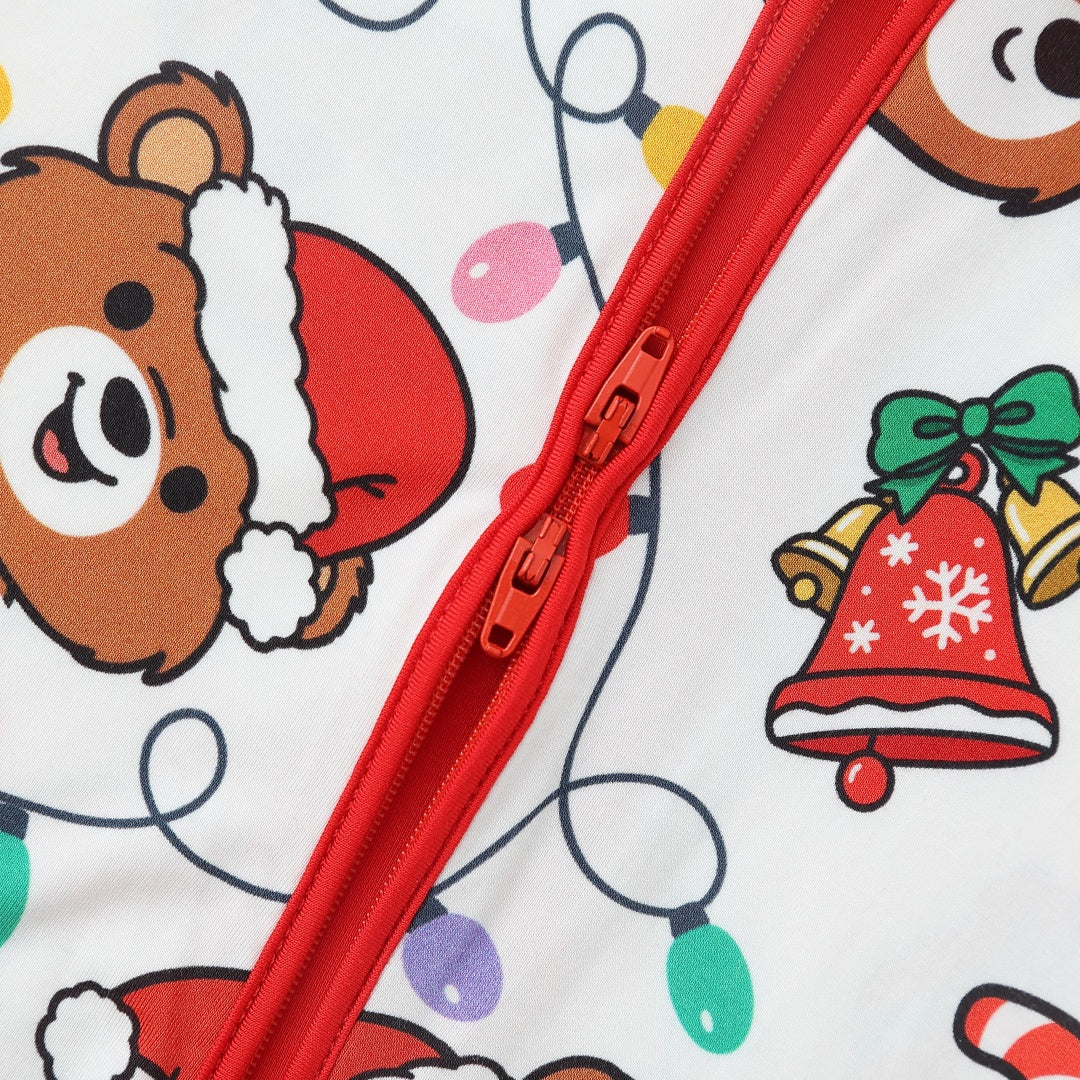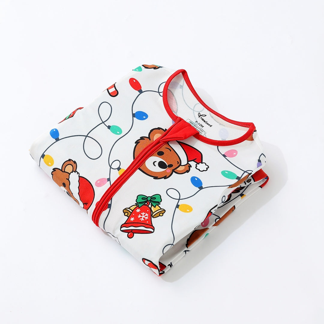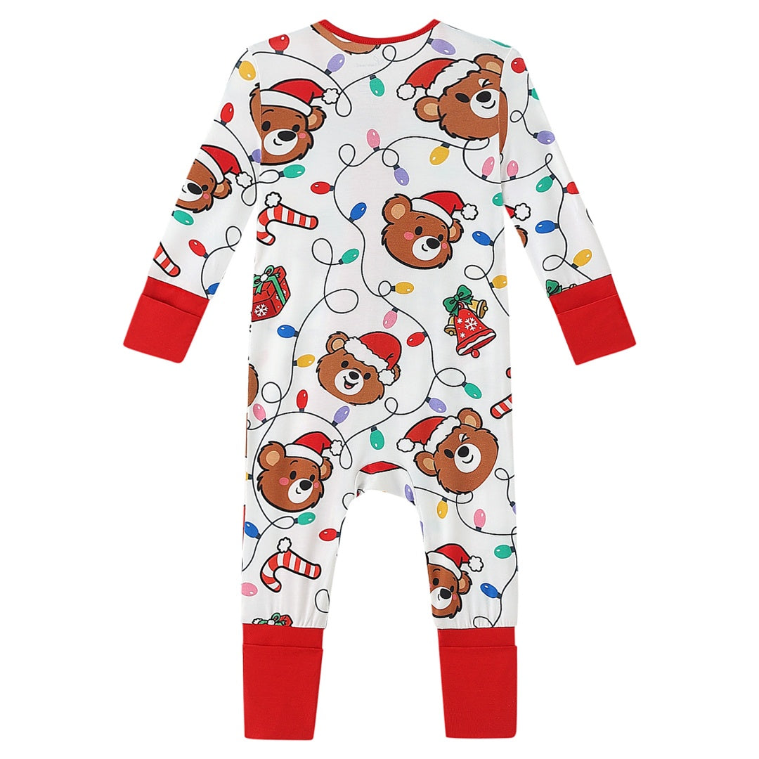 Christmas Light Bear Anti Slip Zipper Footie/ Romper