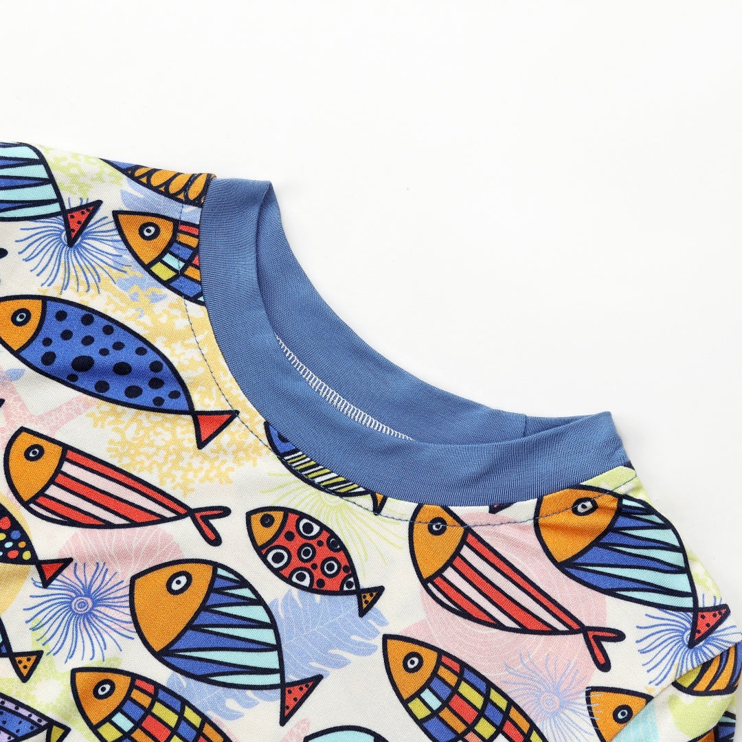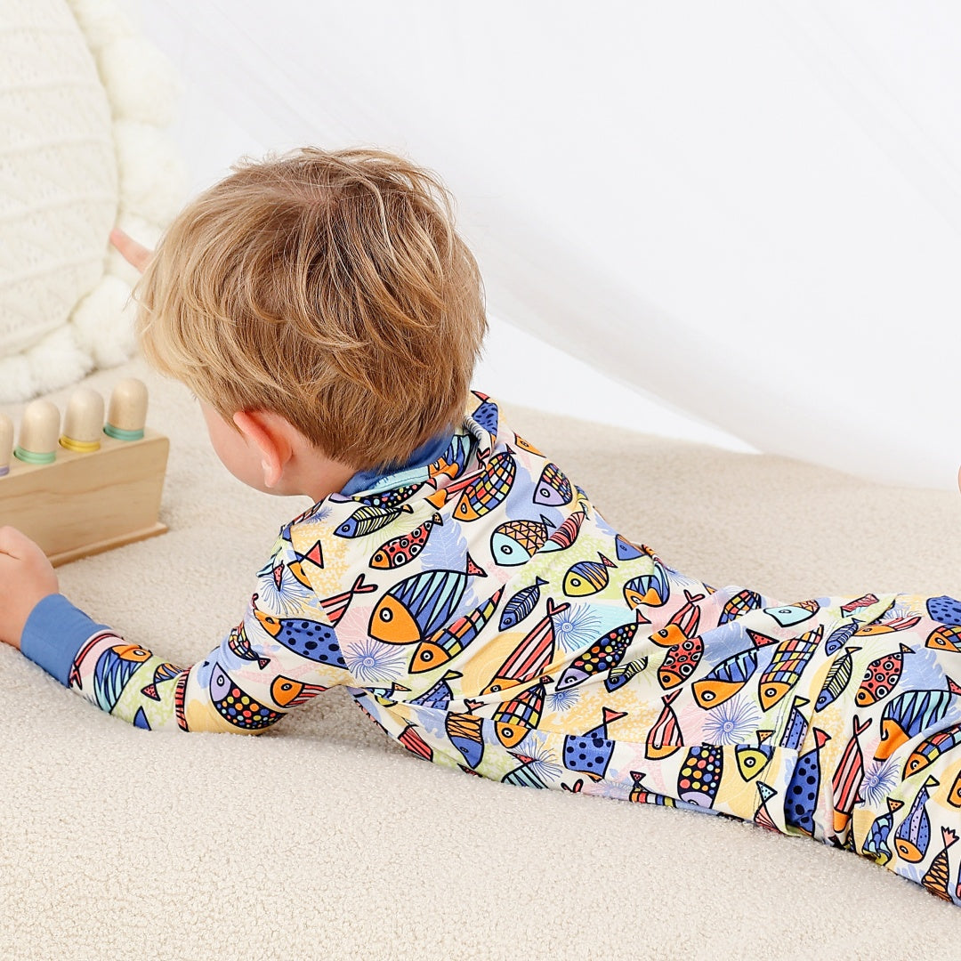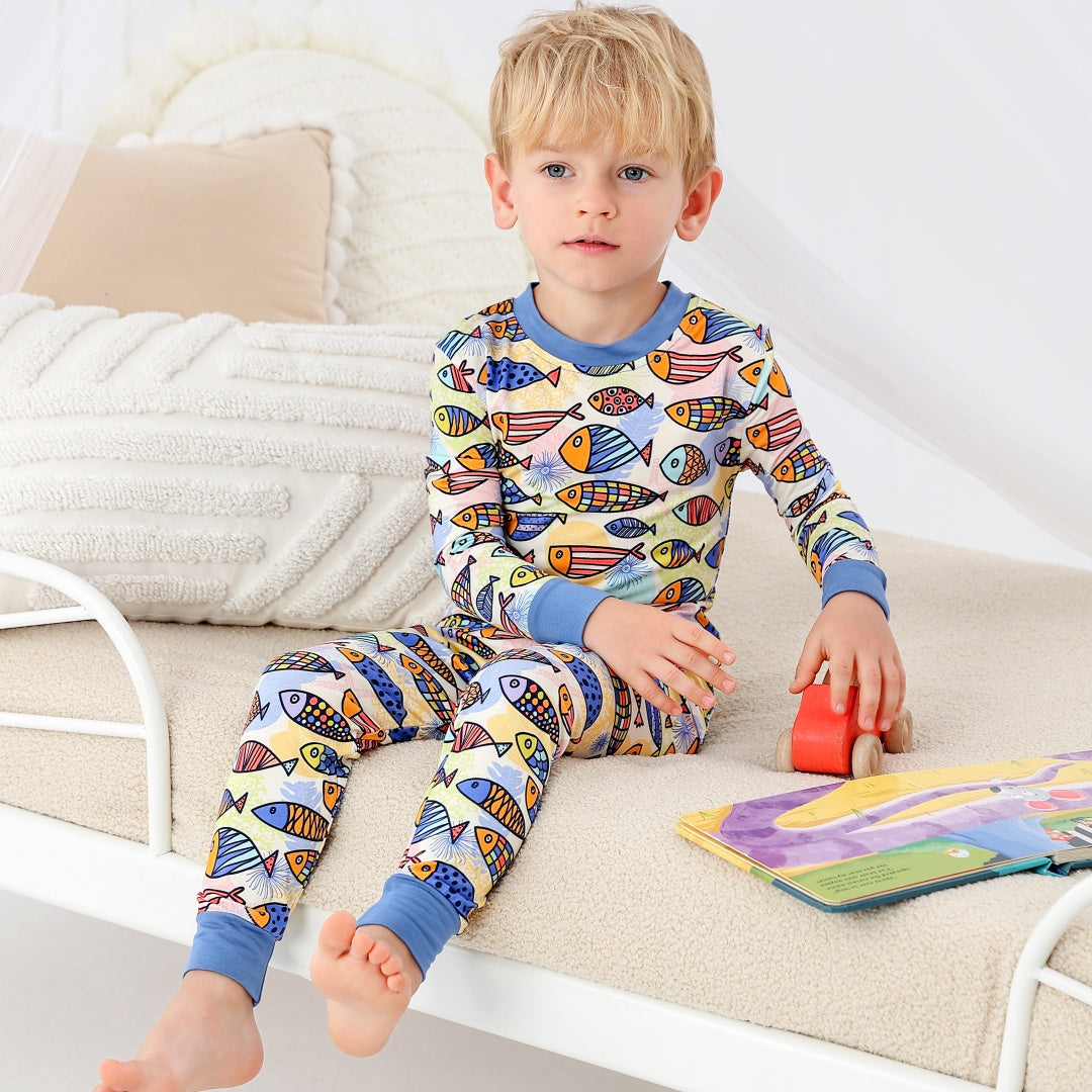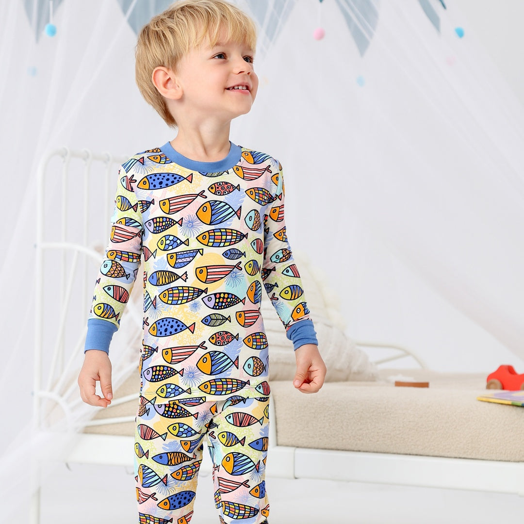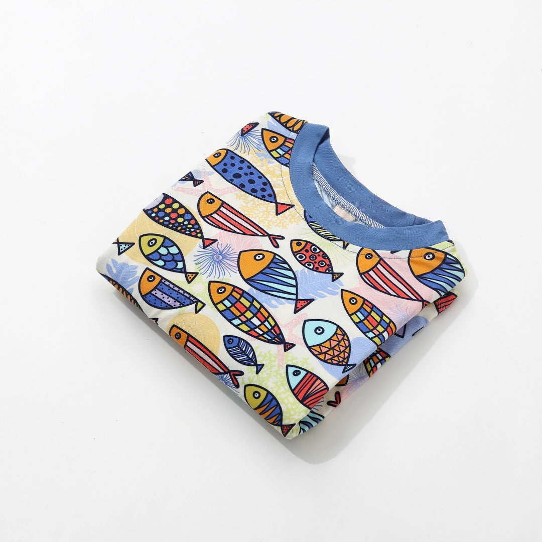 Colorful fish Long Sleeve Two Piece Pajama Set