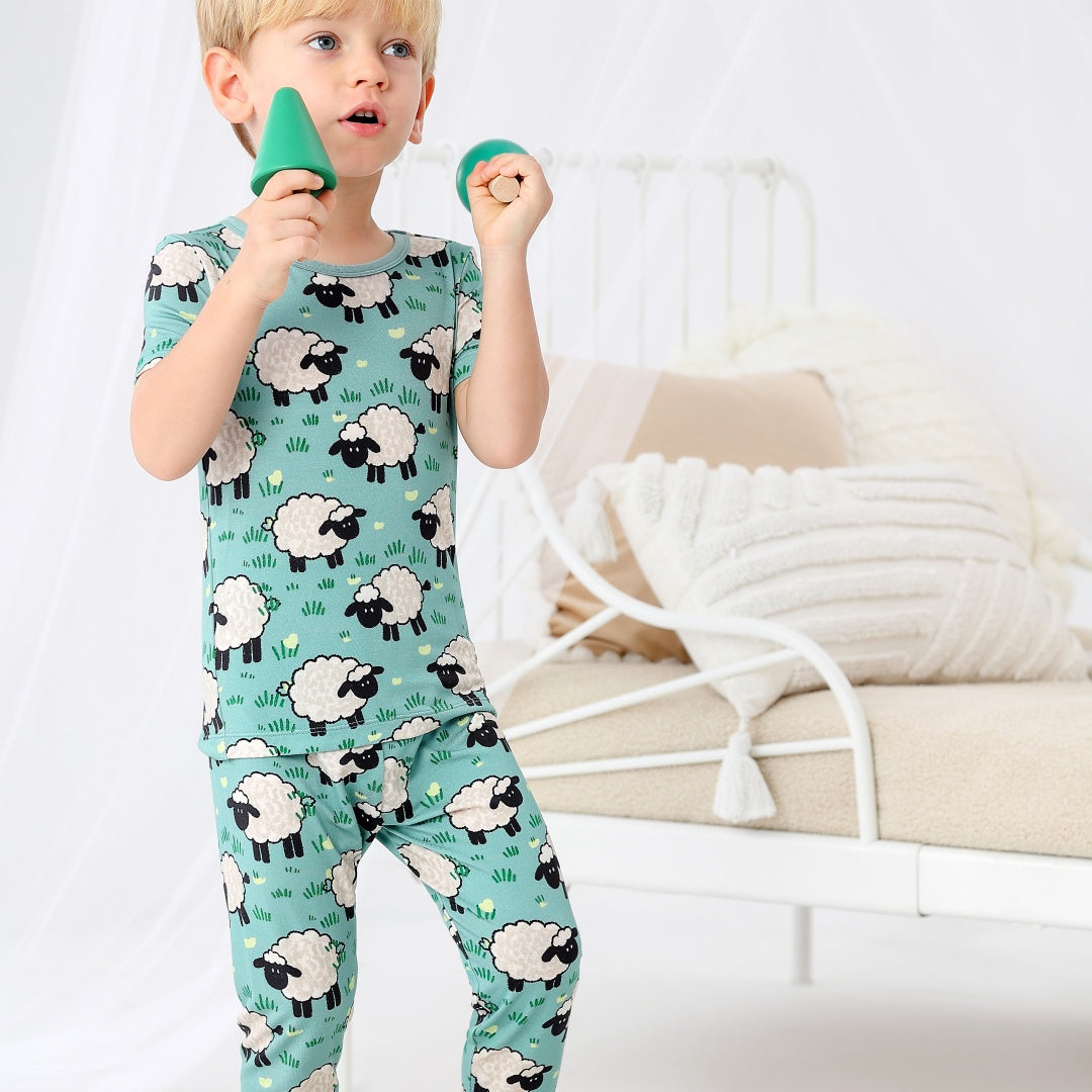 Cute Little Sheep Short Sleeve Two Piece Pajama Set