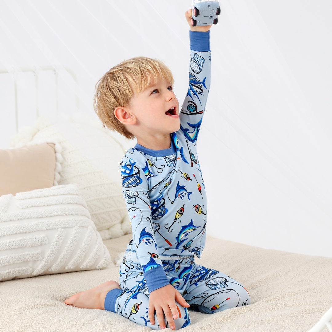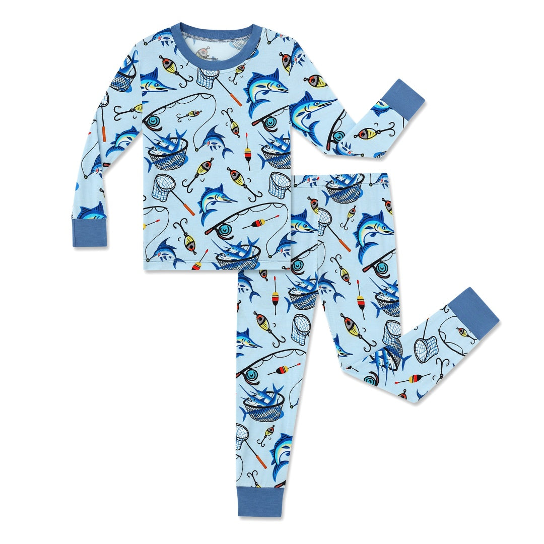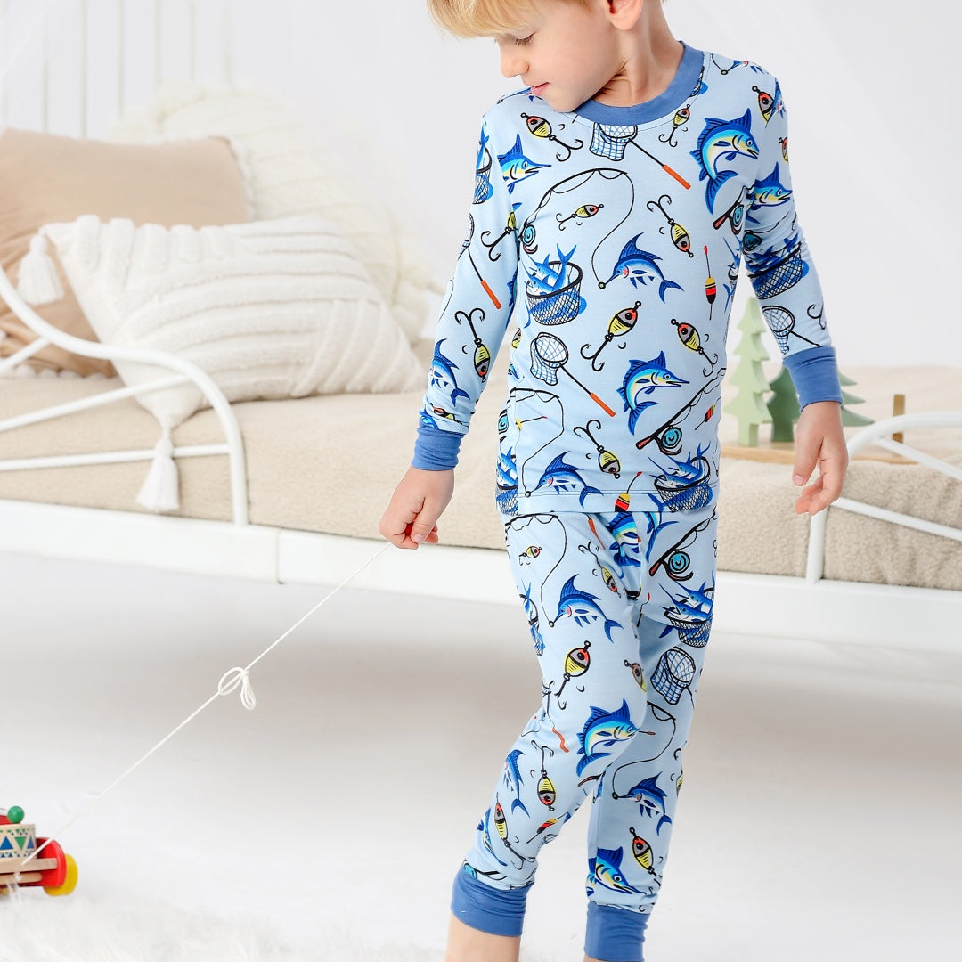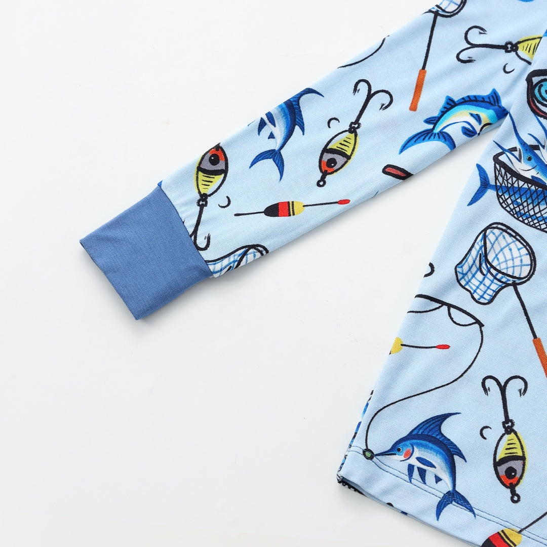 Fishing rod and Fish Long Sleeve Two Piece Pajama Set
