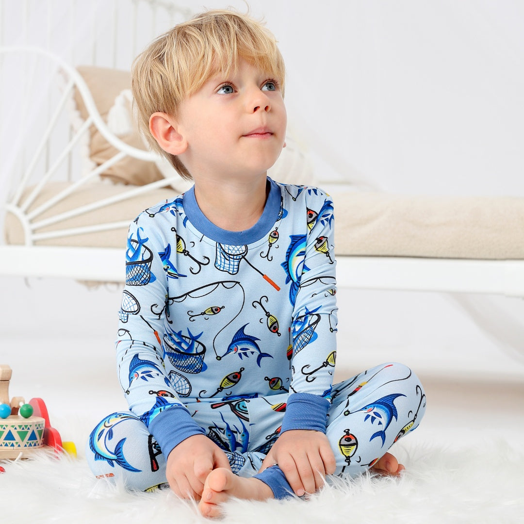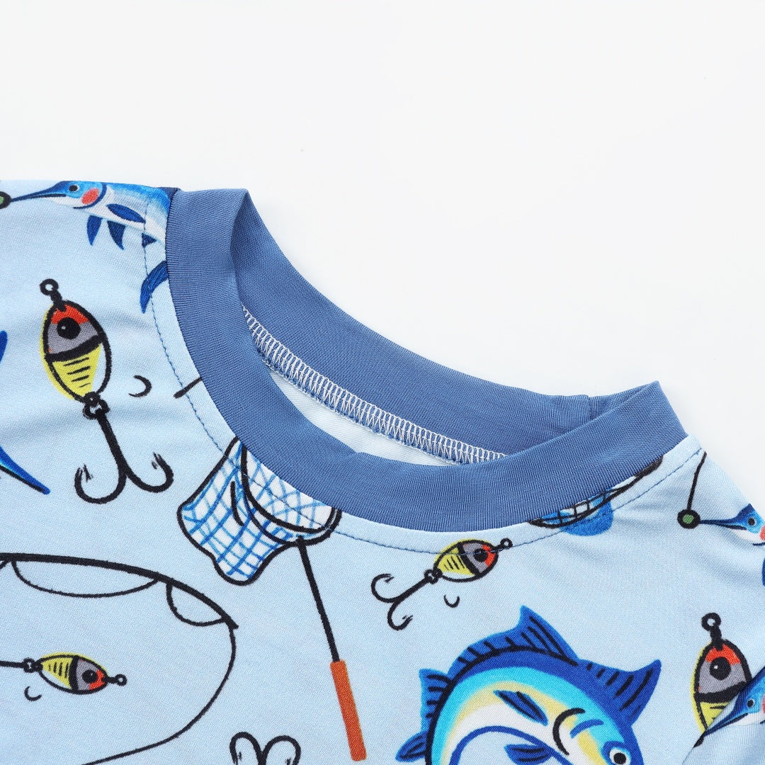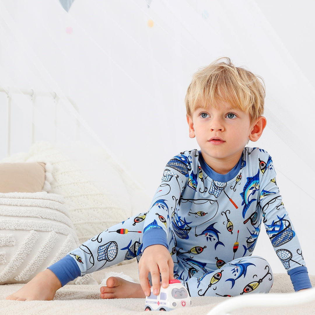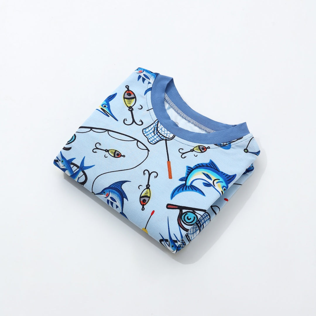 Fishing rod and Fish Long Sleeve Two Piece Pajama Set