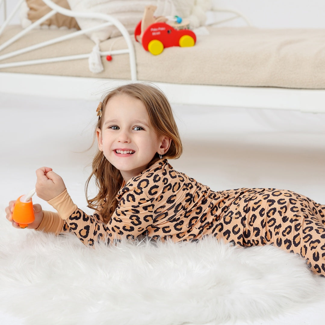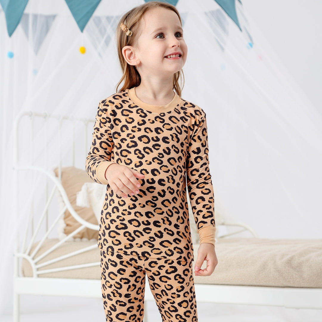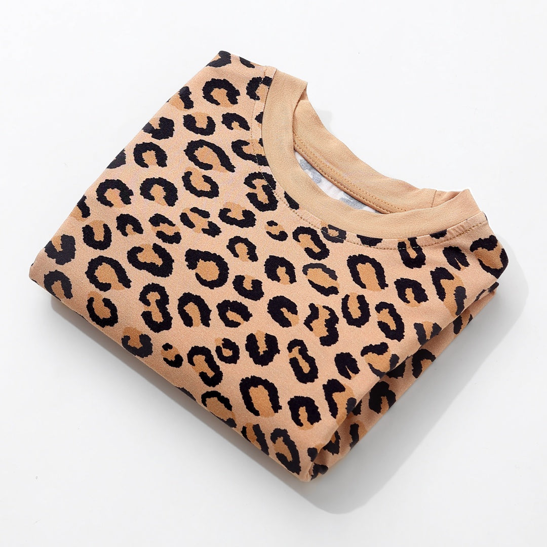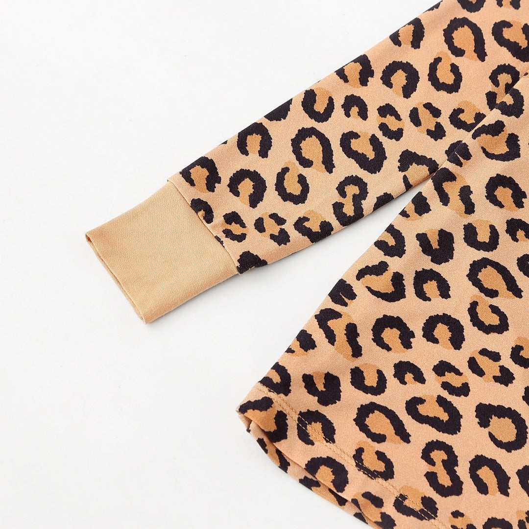 Leopard Print Long Sleeve Two Piece Pajama Set