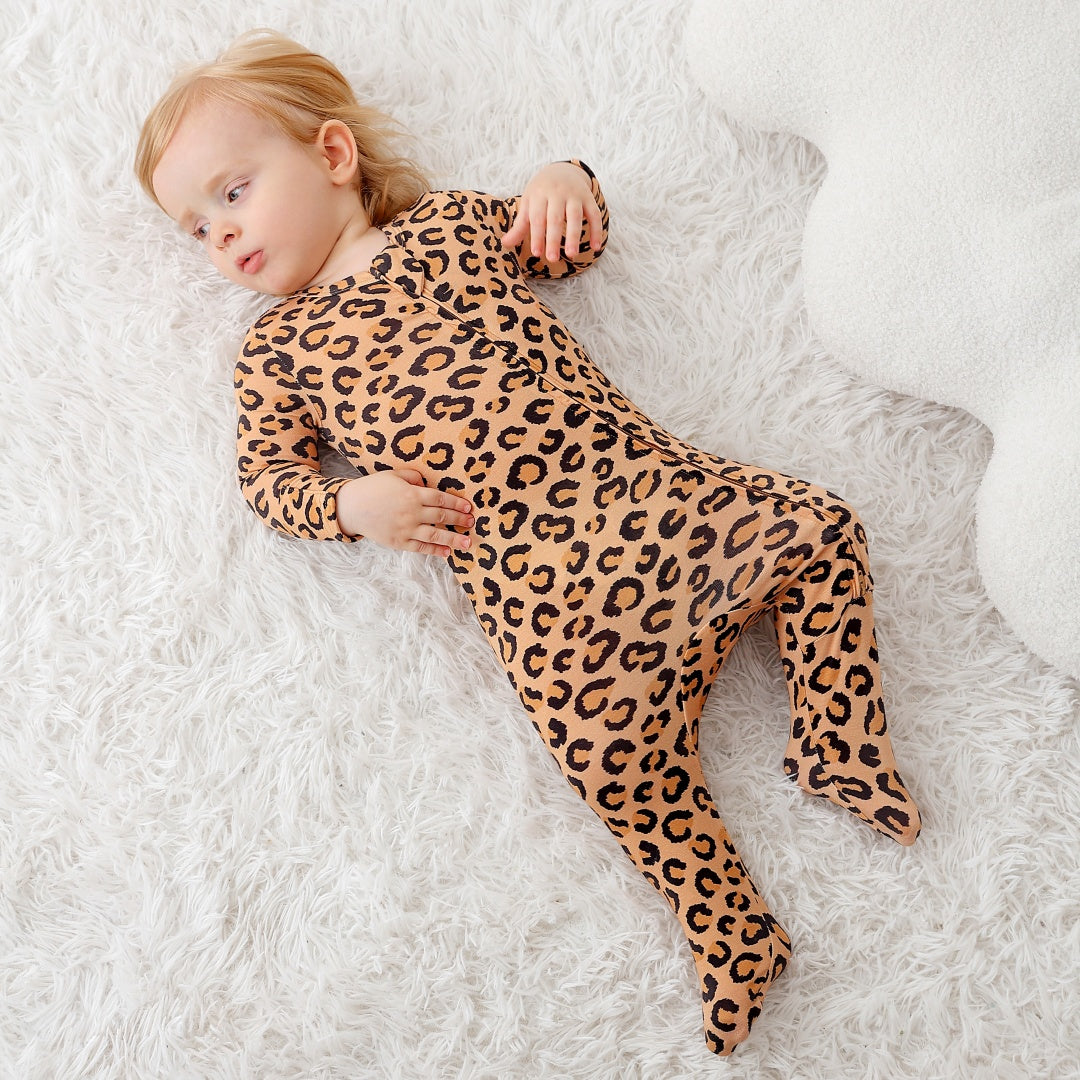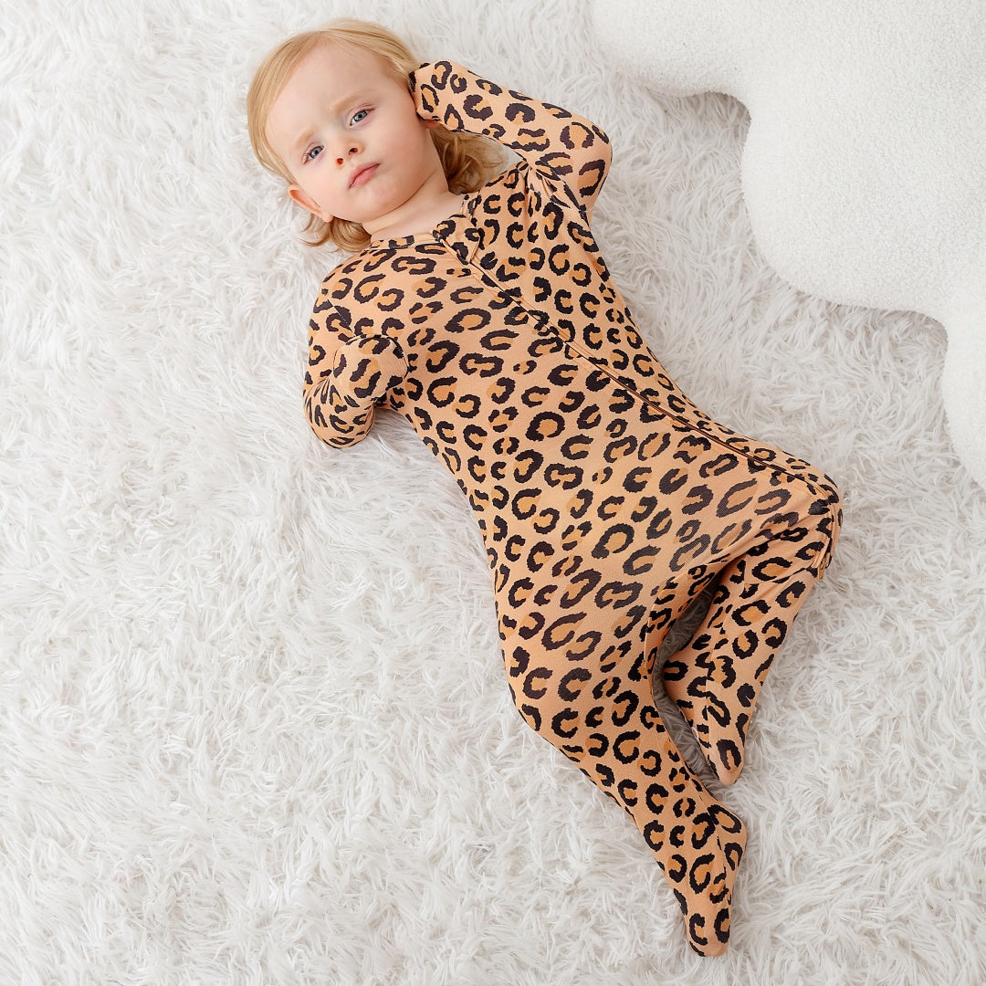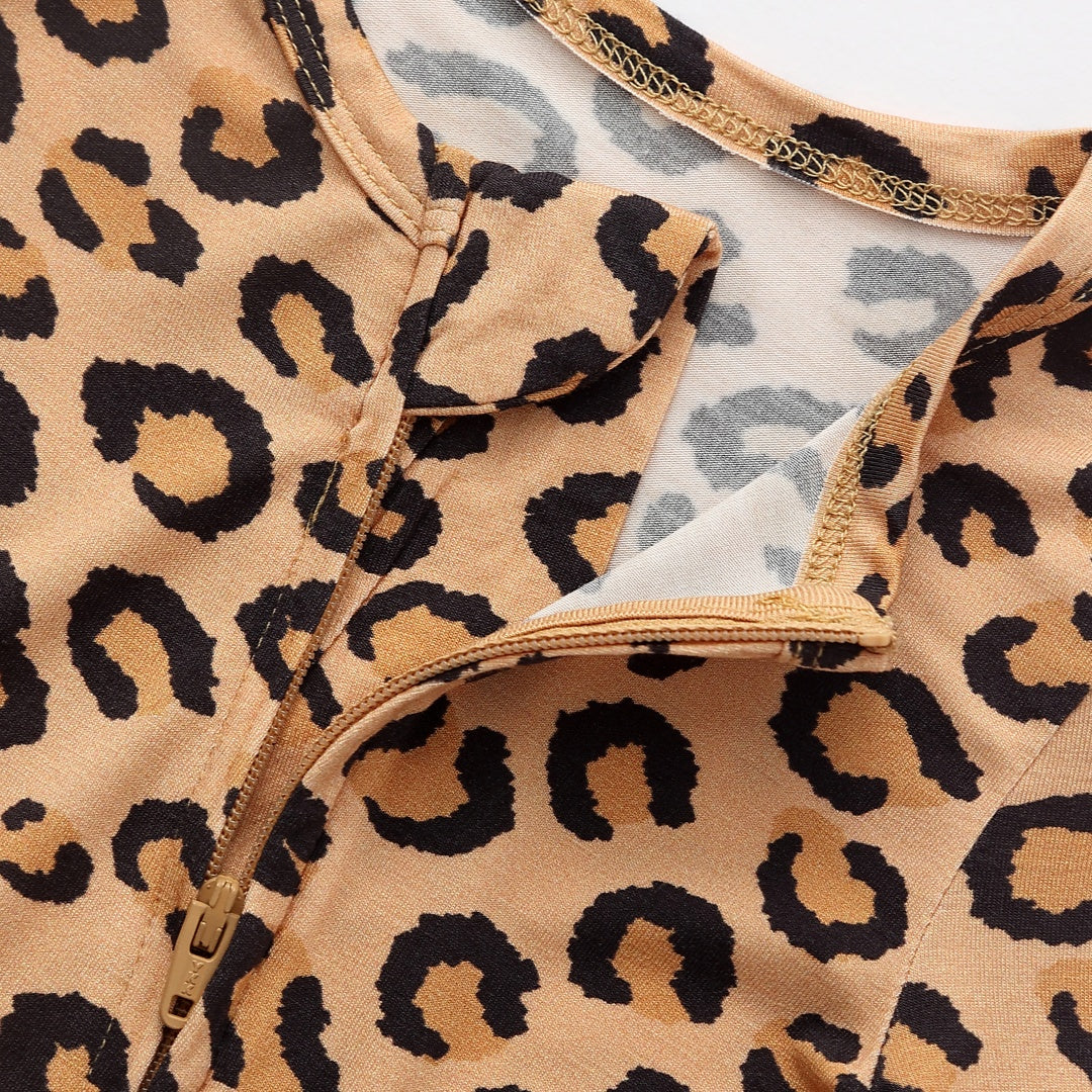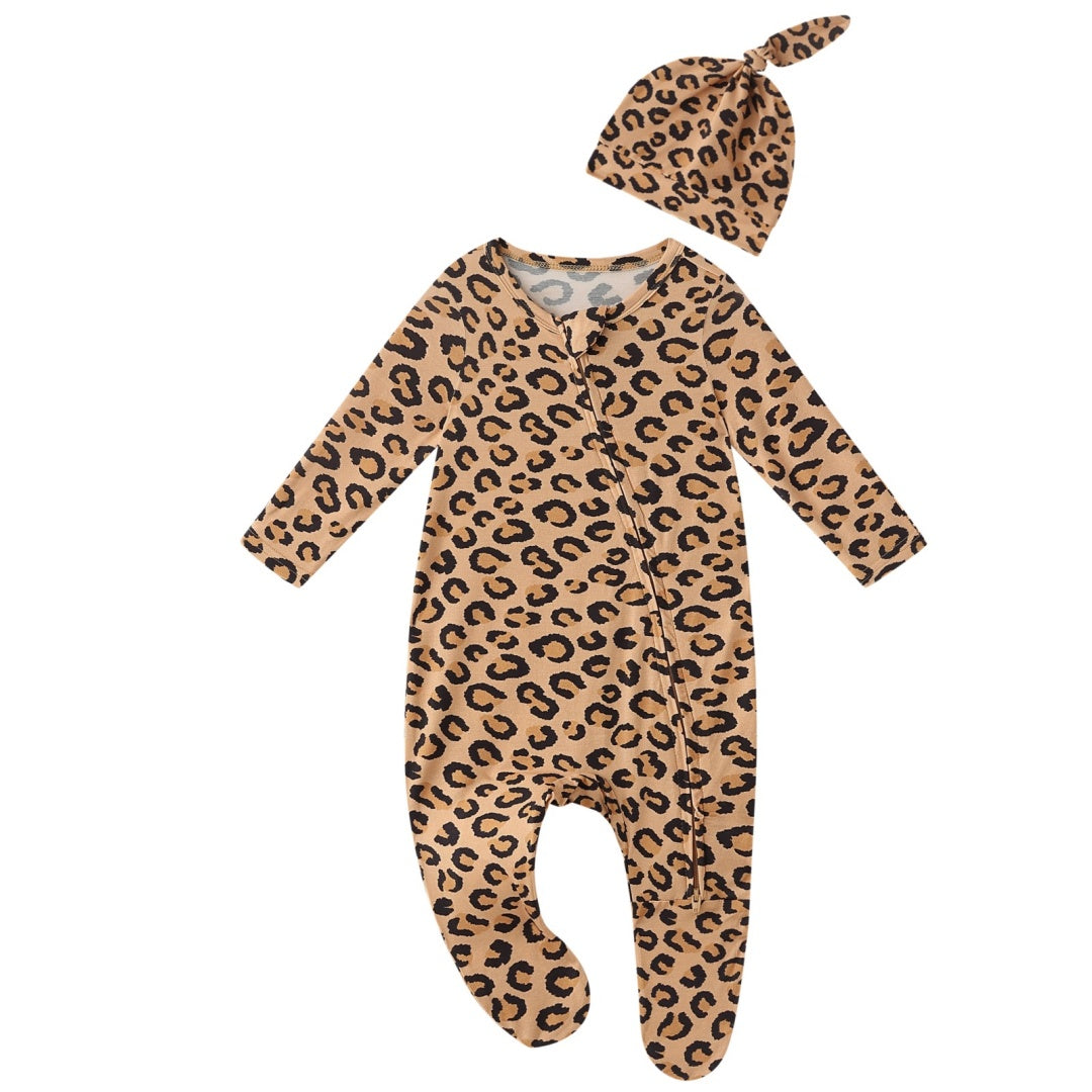 Leopard Print Zipper Footie