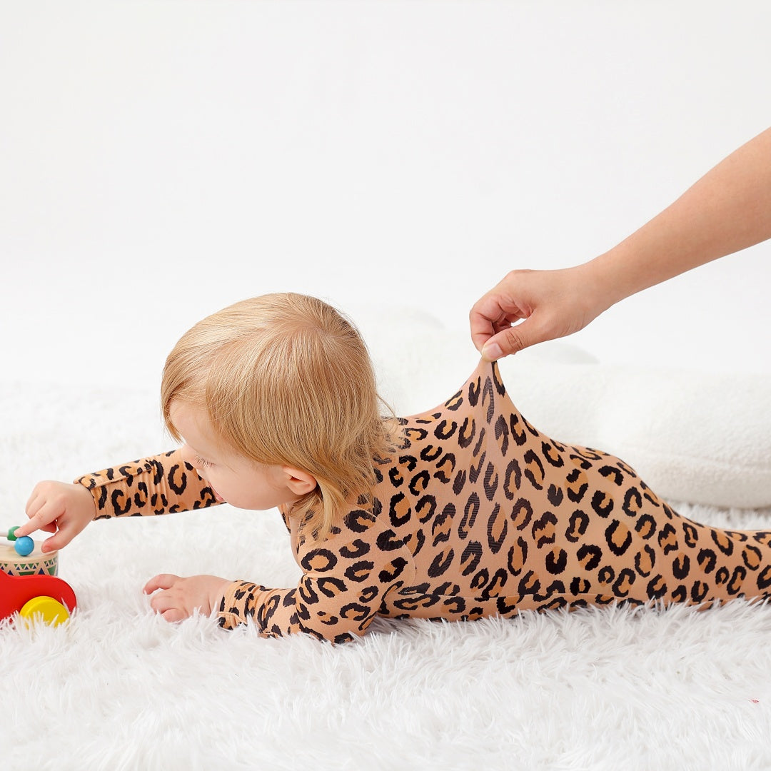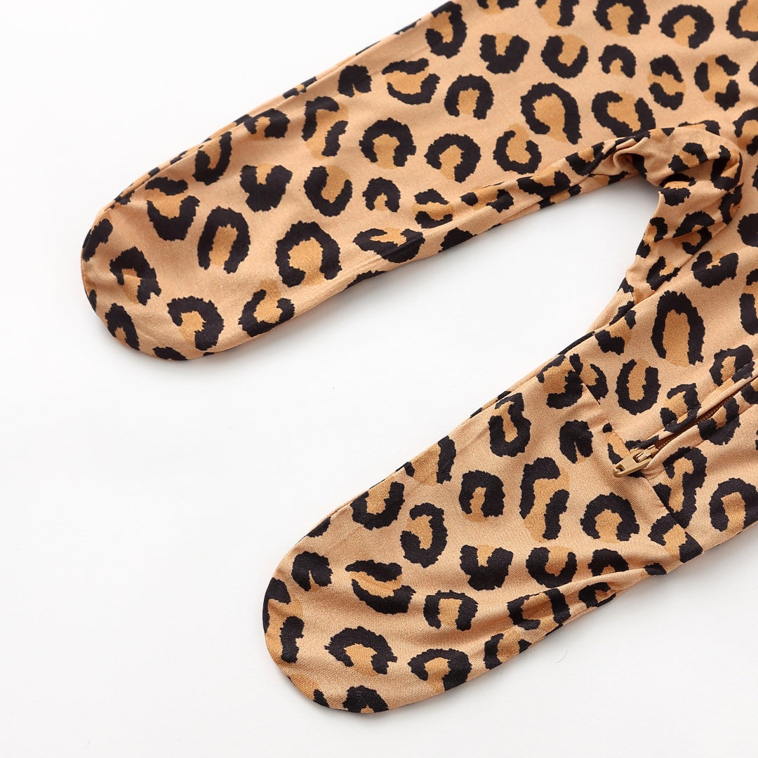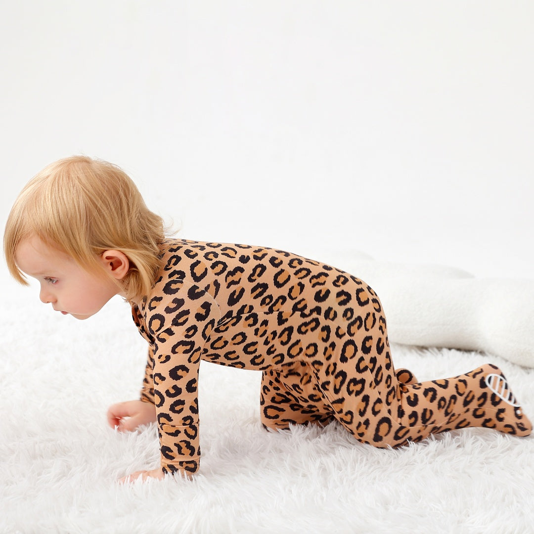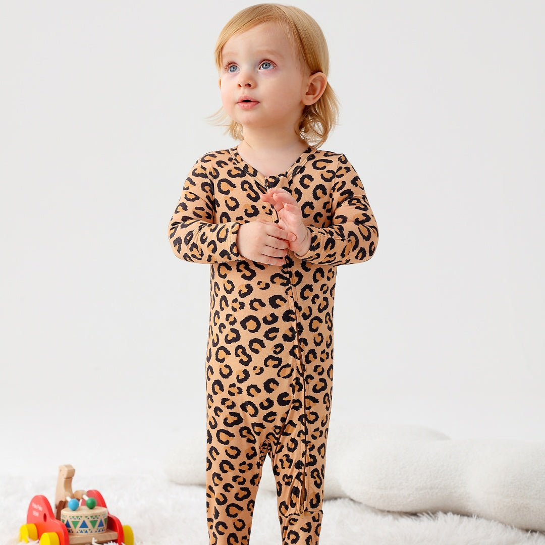 Leopard Print Zipper Footie